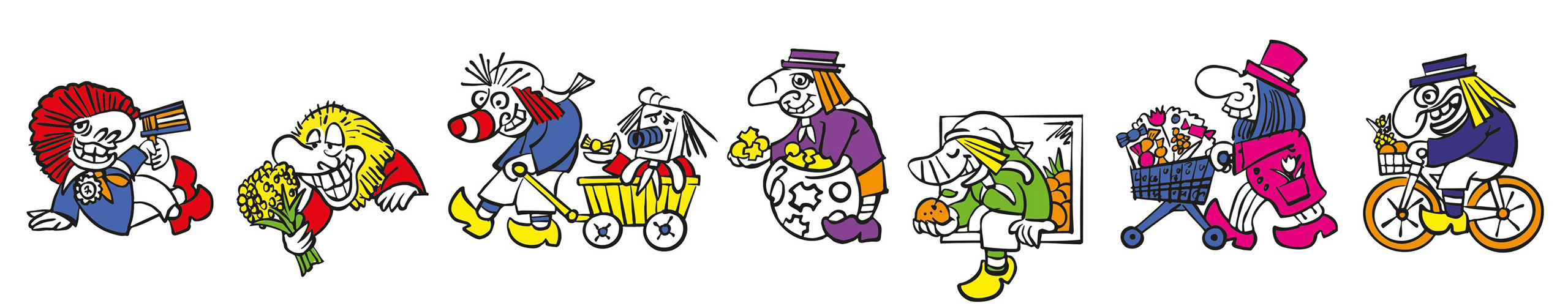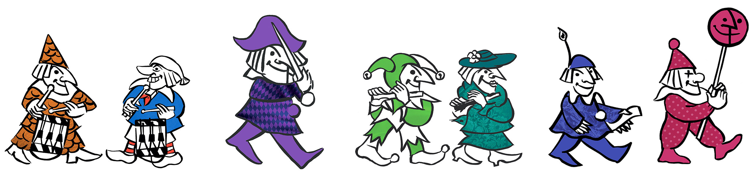 Die Figuren 2025 stehen ganz im Zeichen der Guggemusik. Fabian Fischlin hat 7 tolle und stilvolle Figuren entworfen, die zusammen ein farbenfrohes Guggi-Zügli ergeben. Die Figuren lassen sich auch wunderbar mit den Figuren der letzten Jahre zu einem bunten Fasnachtsfänschter kombinieren.