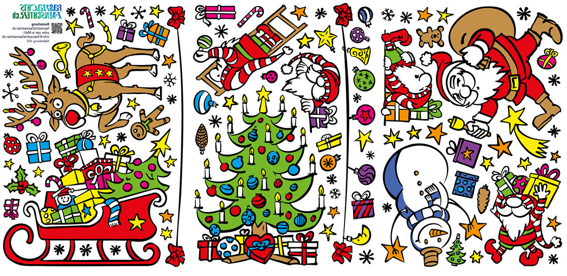 Die Weihnachtsfiguren lassen sich ganz einfach am Schaufenster oder Wohnzimmerfenster anbringen und nach der Fasnacht wieder rückstandslos entfernen. Sie halten auf allen Fensteroberflächen und mit etwas Wasser und einem Rakel geht das Anbringen noch einfacher. Und das Beste: Die Fensterfiguren können im nächsten Jahr wieder verwendet werden, wenn sie nach dem Entfernen sorgfältig in den Bogen zurückgelegt und an einem geschützten Ort aufbewahrt werden