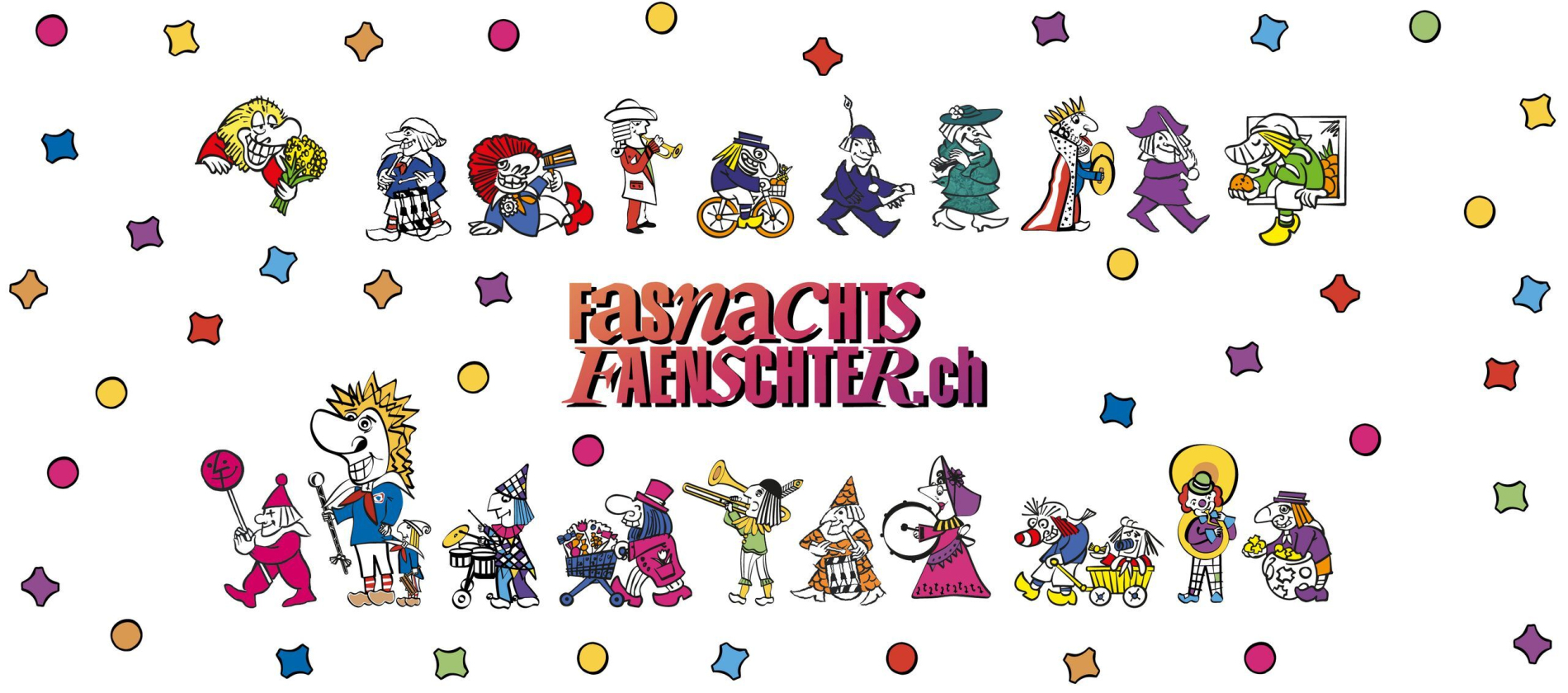 Die Figuren 2025 stehen ganz im Zeichen der Guggemusik. Fabian Fischlin hat 7 tolle und stilvolle Figuren entworfen, die zusammen ein farbenfrohes Guggi-Zügli ergeben. Die Figuren lassen sich auch wunderbar mit den Figuren der letzten Jahre zu einem bunten Fasnachtsfänschter kombinieren.
