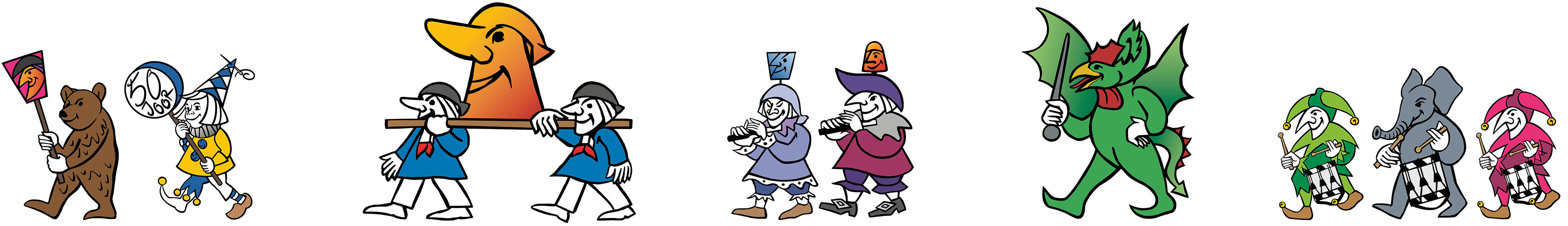 Ich bin überzeugt, dass ich nicht die Einzige mit diesem Wunsch bin und habe aus diesem Grund wunderschöne Fasnachtsfiguren mit den traditionellen "Basler Goschdym" Gloon, Pierrot, Harlekin, Blätzlibajass, alti Dante, Ueli und Waggis zusammen mit Magnus Roth entworfen.